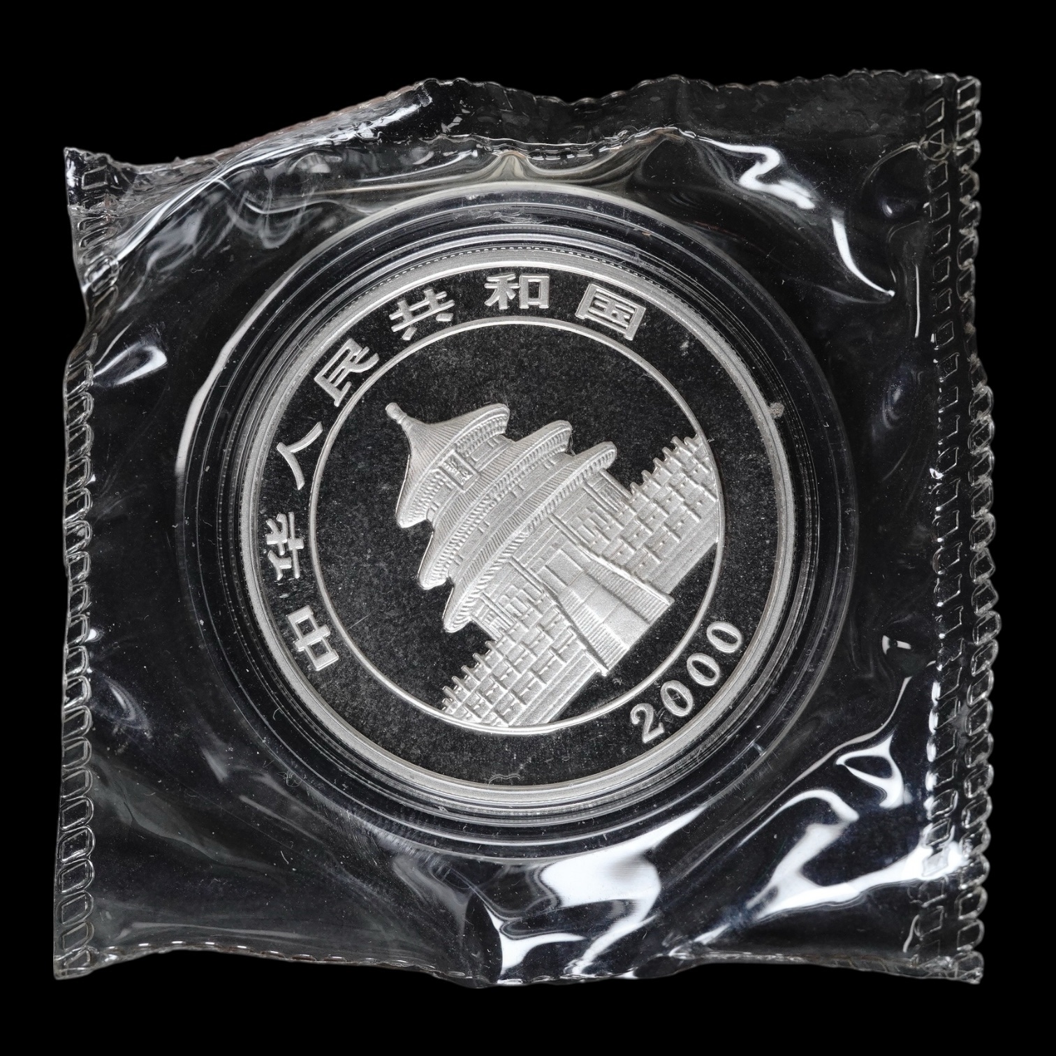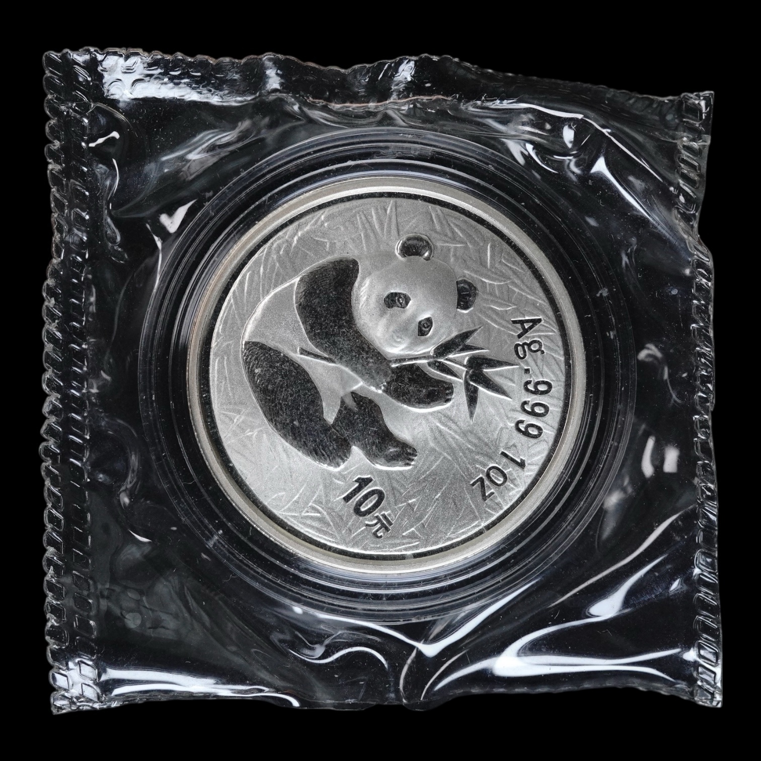 !RARA! – Panda 2000 – Moneda 10 Yuan China – 1 Onza de Plata .999 – (Mirrored Ring)