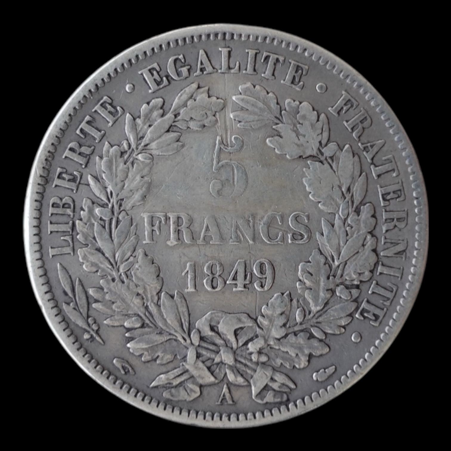 5 Francs – Republique Francais 1849 “A” Francia ( Duro de Plata) 24,64 Gr.