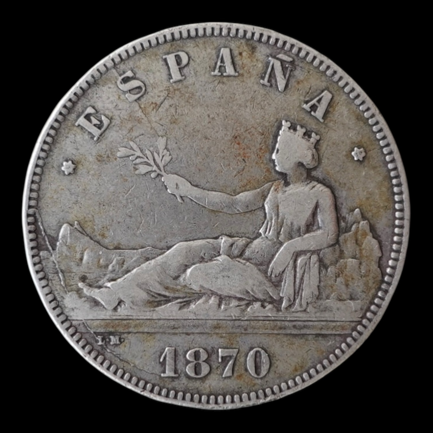 5 Pesetas 1870 *70 – Gobierno Provisional (Duro de Plata) -24,65 Gr.