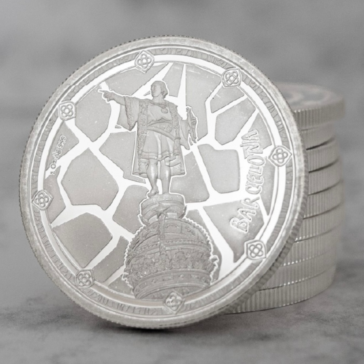 Reverso: Representación de la Estatua de Cristóbal Colón de Barcelona.