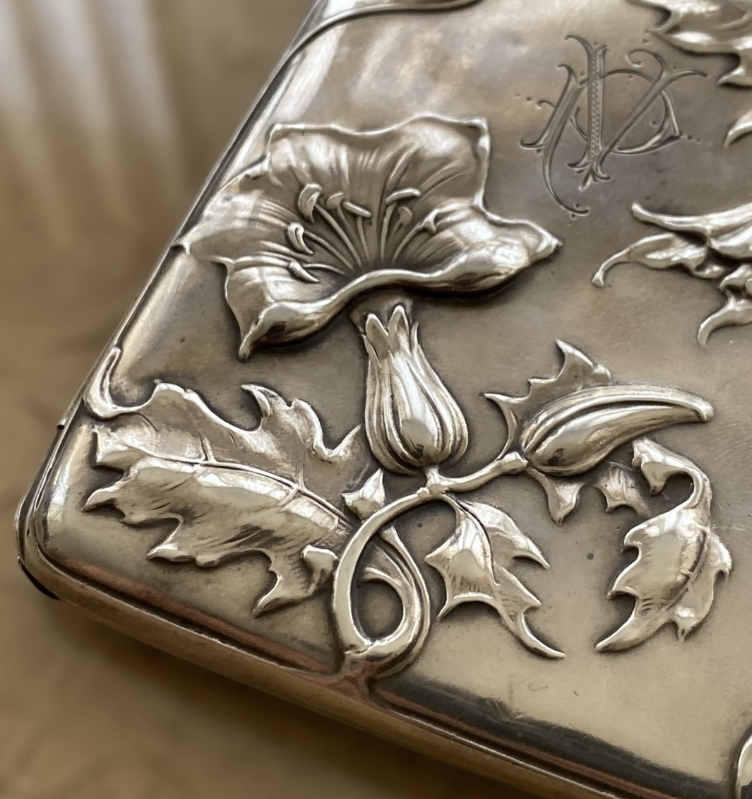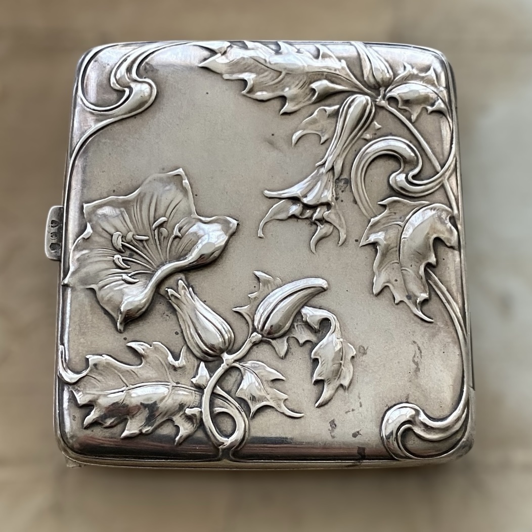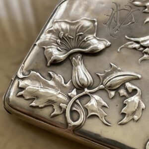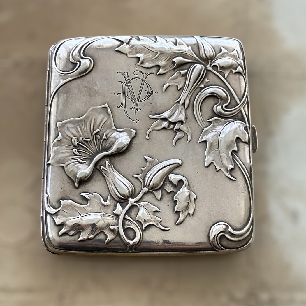 Antigua Pitillera de Plata Modernista de Finales de Siglo XIX