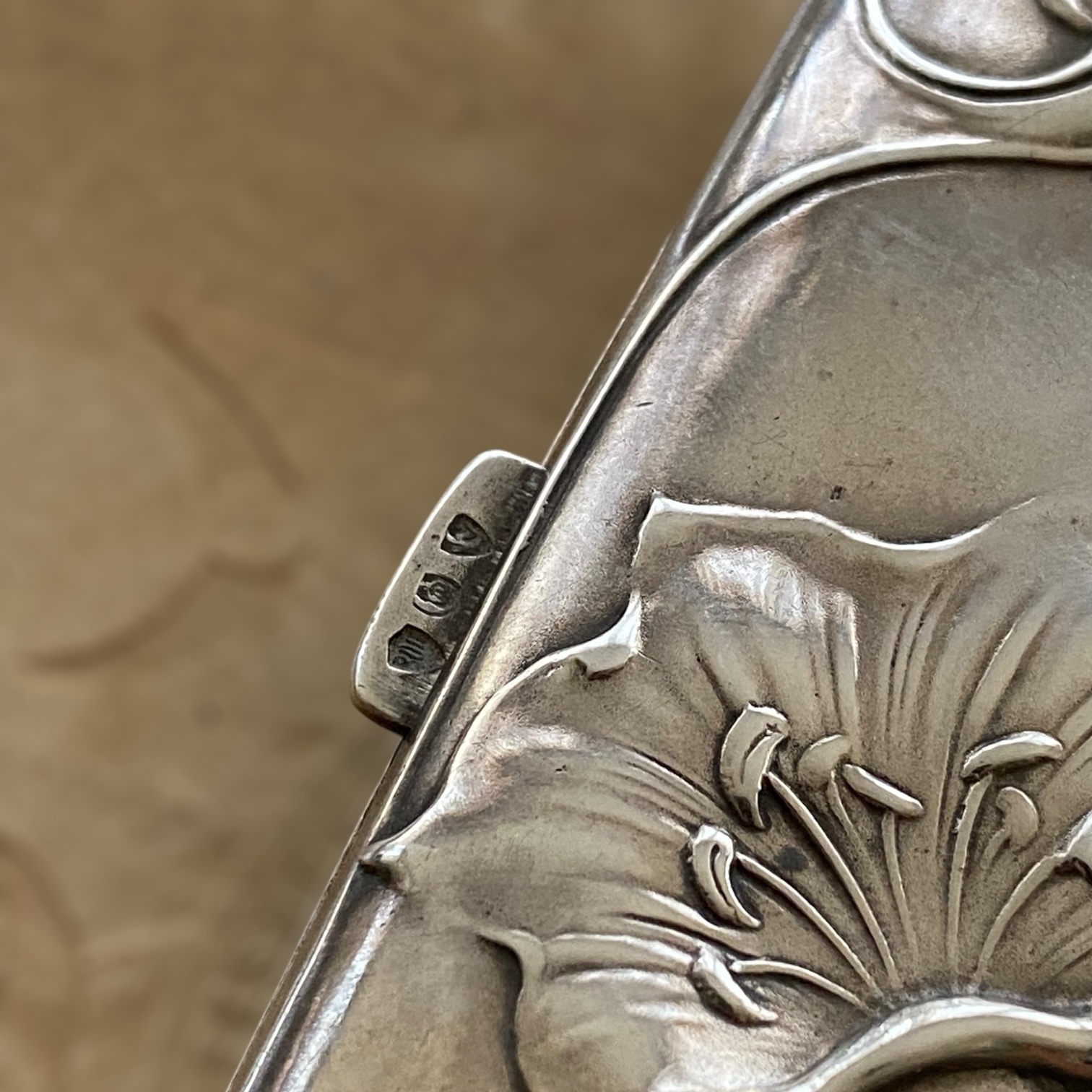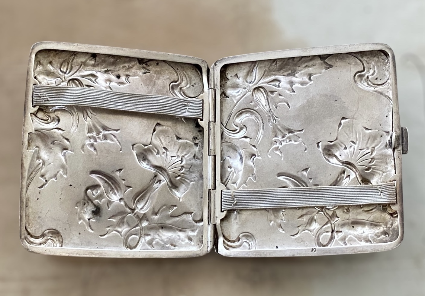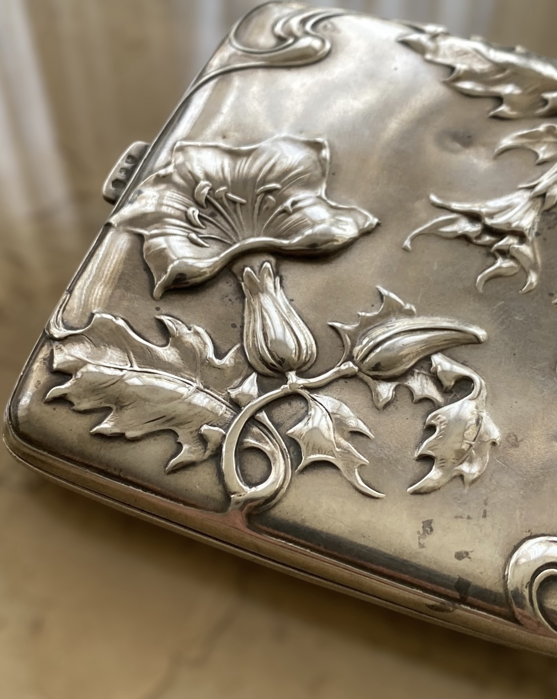Antigua Pitillera de Plata Modernista de Finales de Siglo XIX