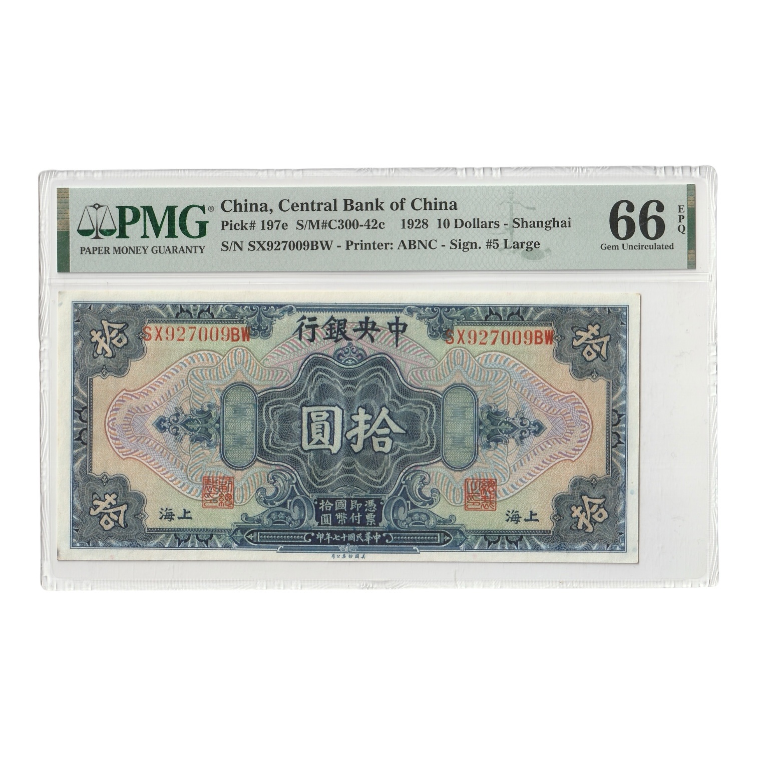 Billete 10 Dollares China 1928 Central Bank of China – PMG 66 EPQ