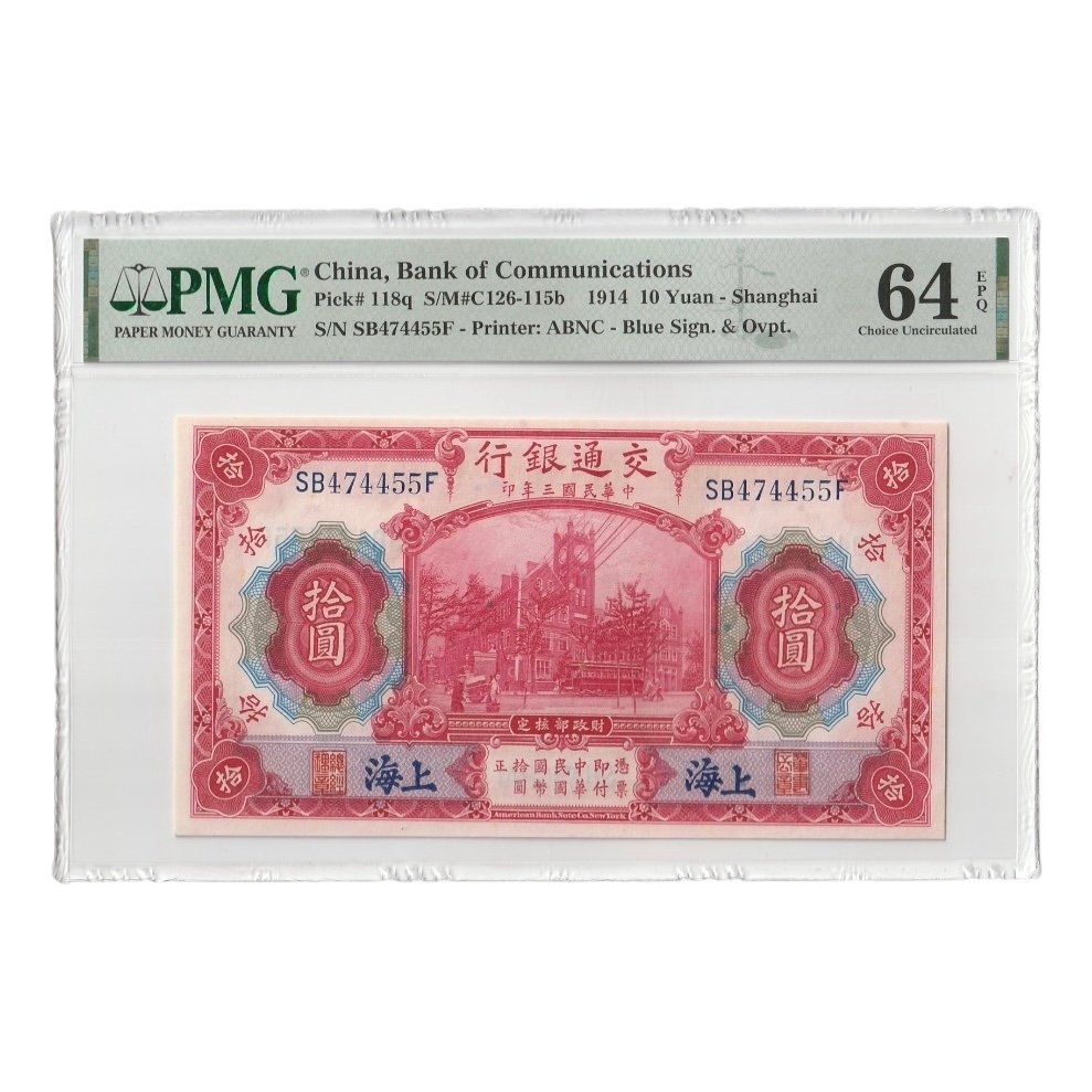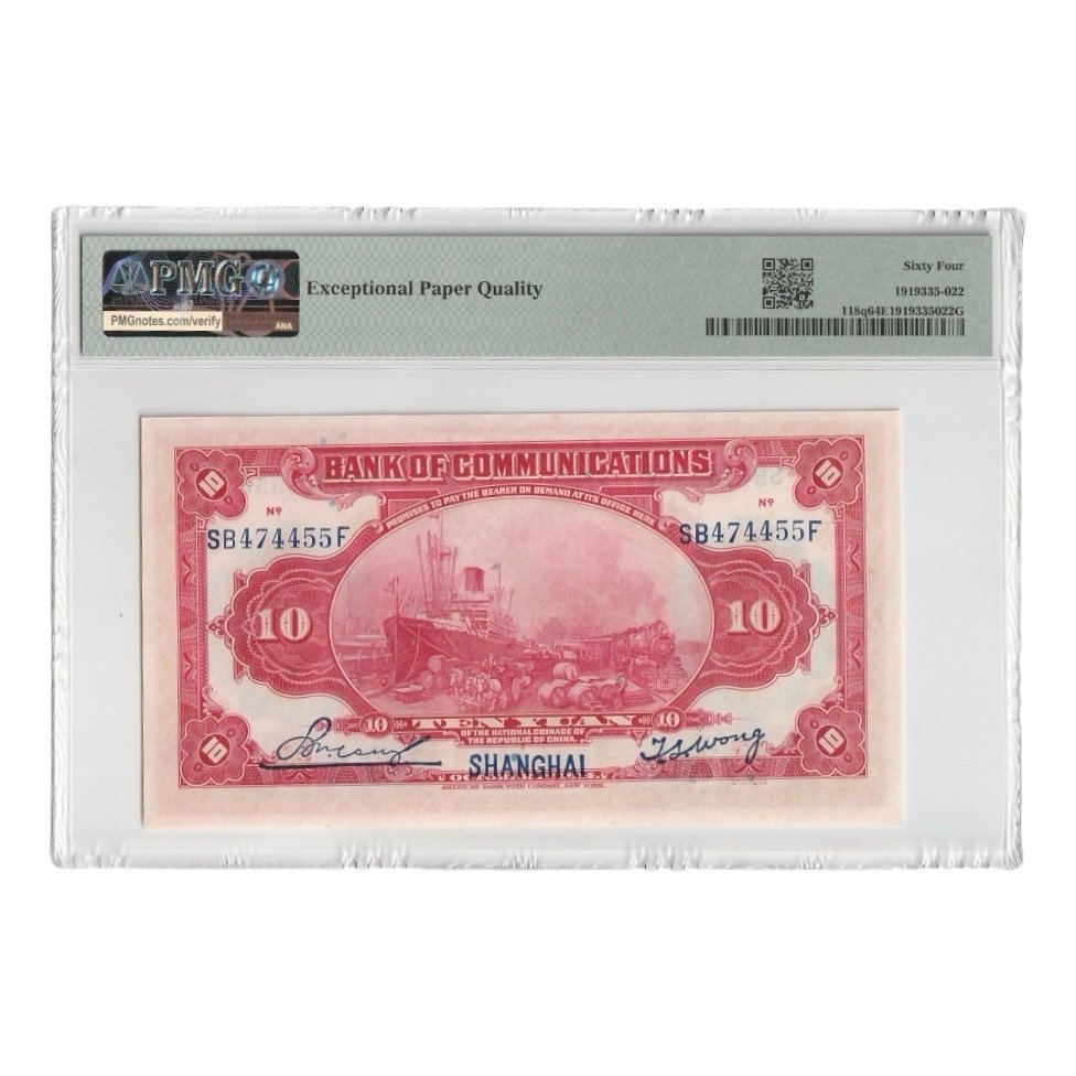 Billete 10 Yuan China 1914 Bank of Communications – PMG 64