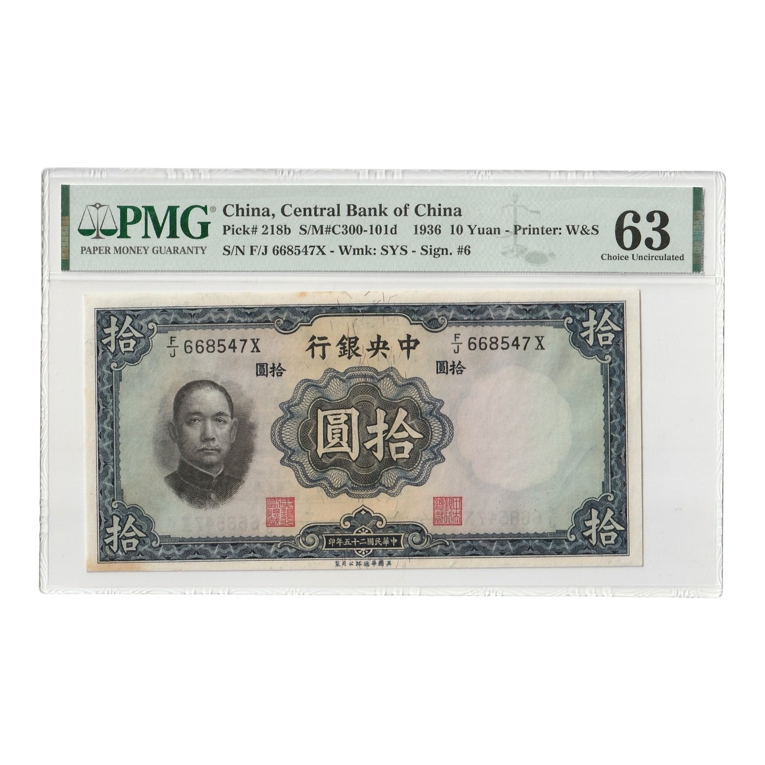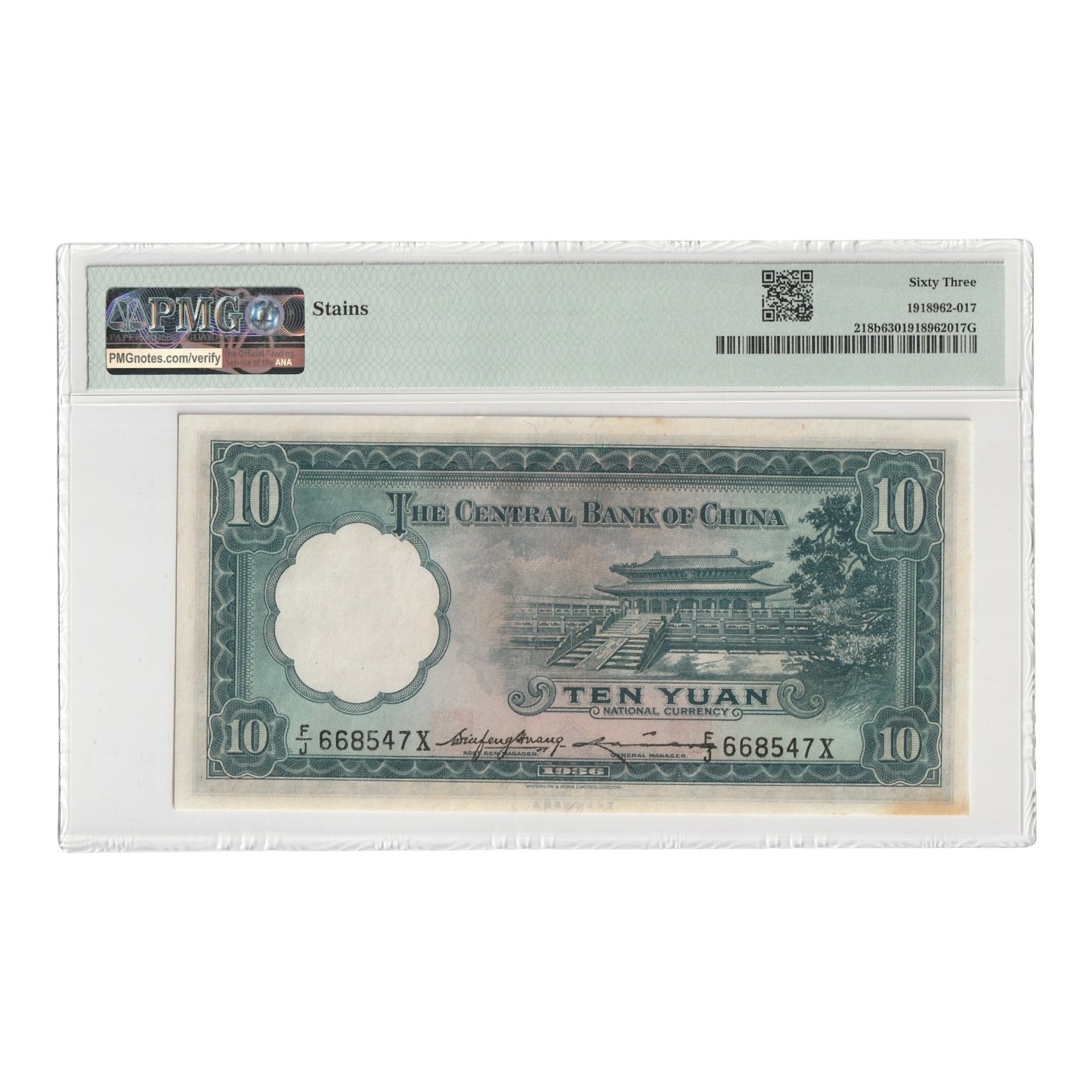 Billete 10 Yuan China 1936 central Bank of China – PMG 63