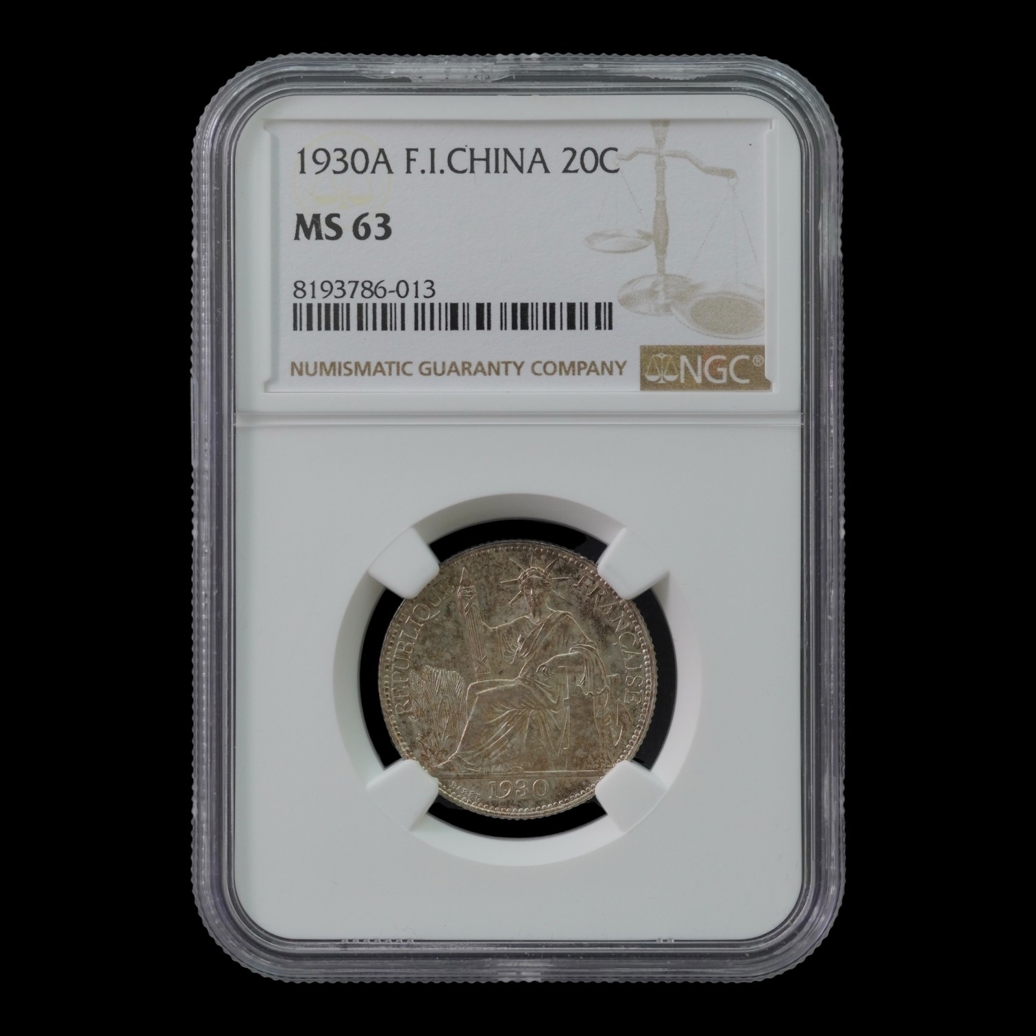 Indochina Francesa – 20 Cents 1930 (A) – Plata .680 – 5,4 g – NGC MS63
