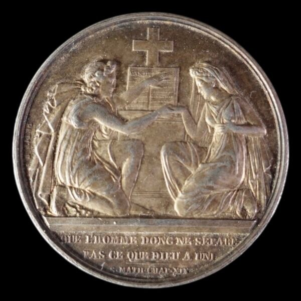 Leyenda | «Que l’homme donc ne sépare pas ce que Dieu a uni. S. Mathieu, chap. XIX.» |