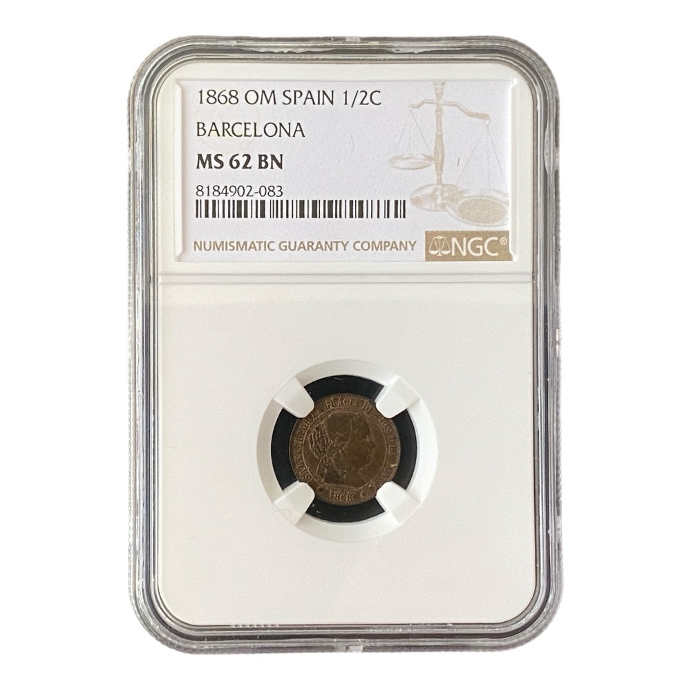 Moneda 1/2 Centimo 1868 Barcelona – NGC MS62