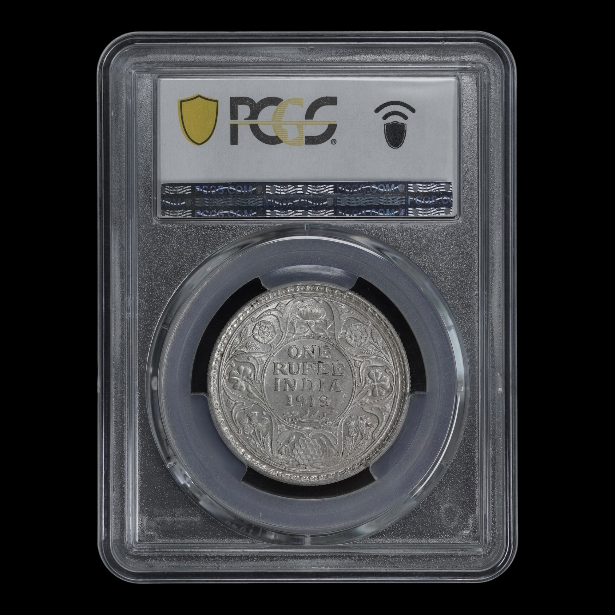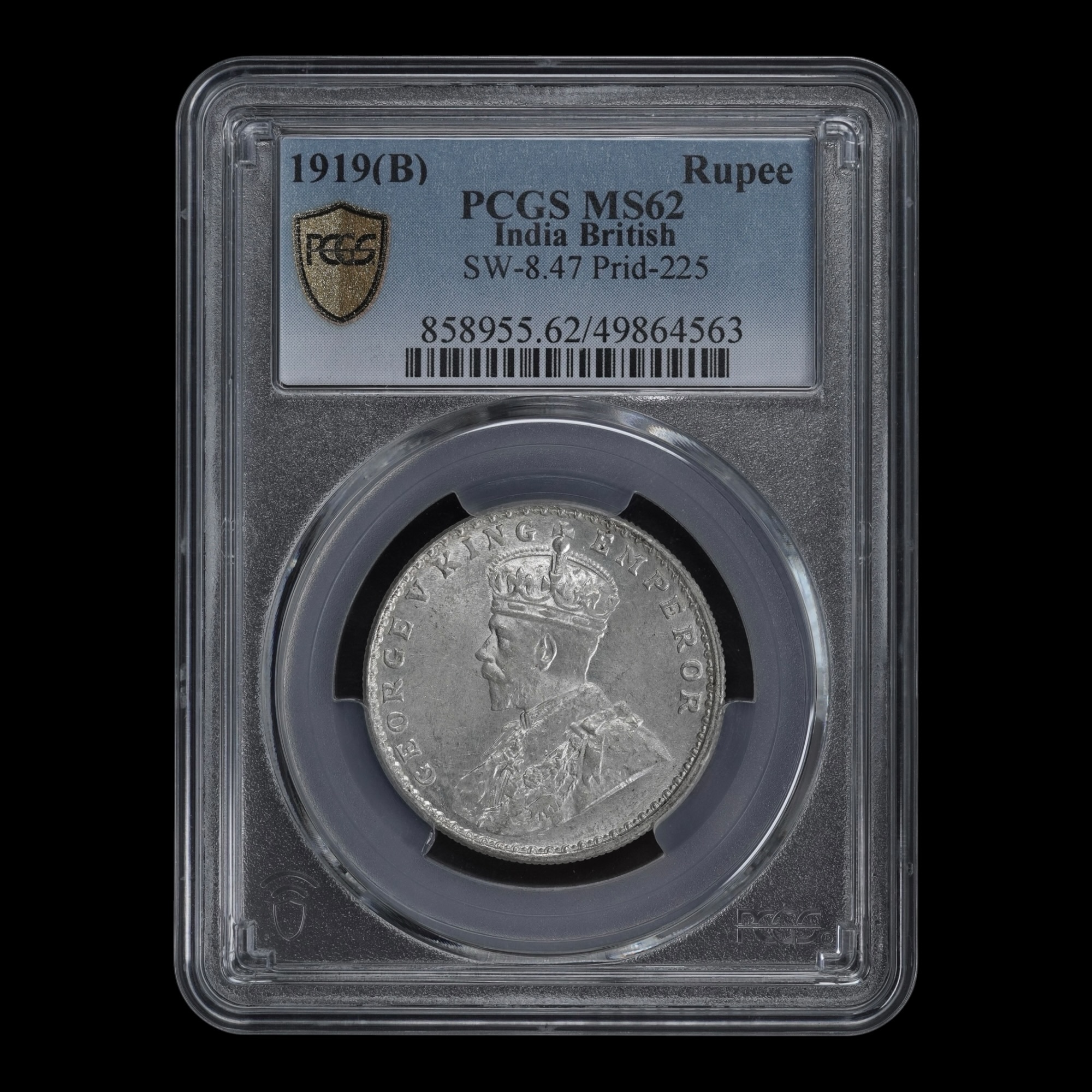 India – British Raj 1919 (B) 1 Rupee – George V Plata (.917) Bombay Mint 11.66g PCGS MS62