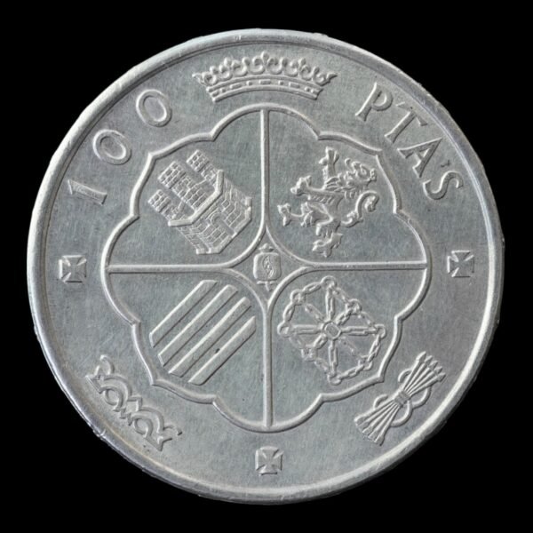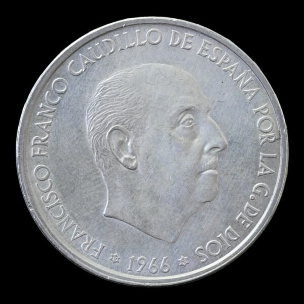Moneda de 100 Pesetas de España (1966) con busto de Francisco Franco. Plata .800 | 19 g. Ejemplares circulados, ideales para inversión en plata.