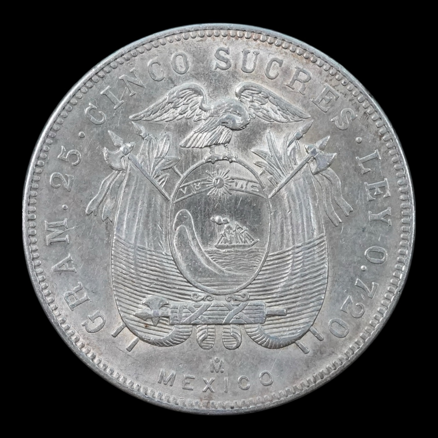 5 Sucres | 25 Gr. Plata | Año 1943