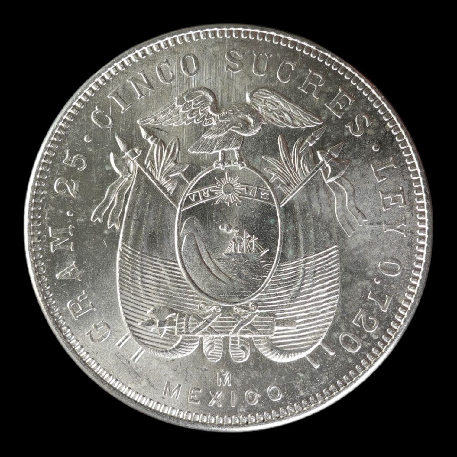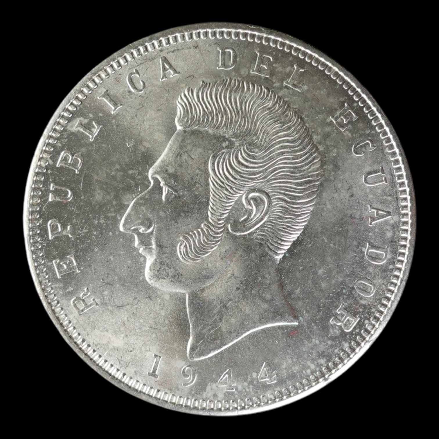 5 Sucres | 24,95 Gr. Plata | Año 1944