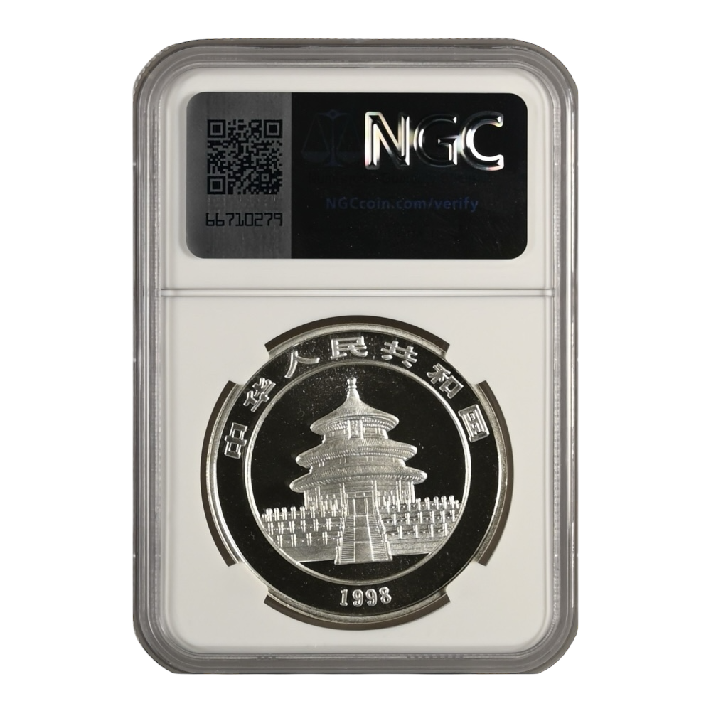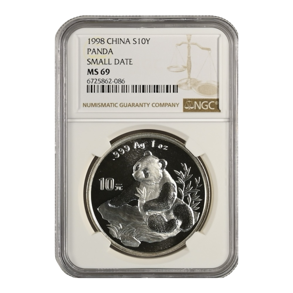 Moneda de Plata Panda 1998 Fecha Pequeña – NGC MS69