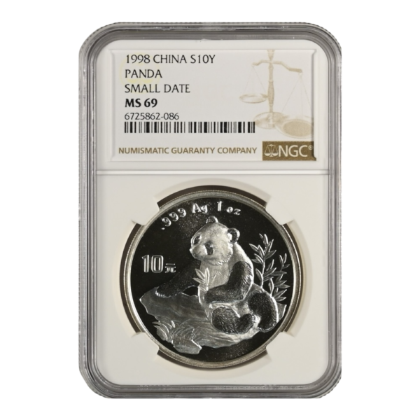 Moneda de Plata Panda 1998 Fecha Pequeña – NGC MS69