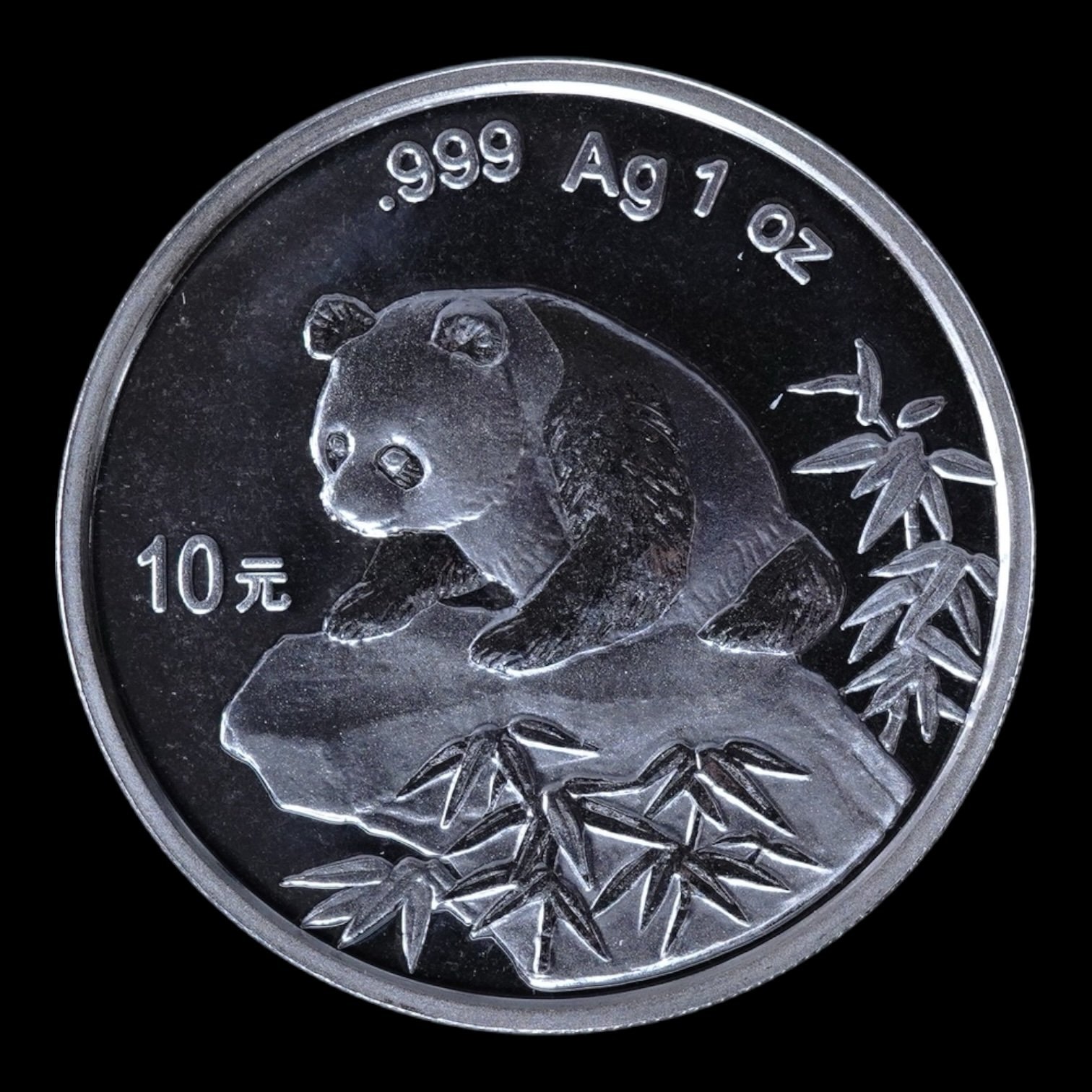 Panda 1995 – Moneda 10 Yuan China – 1 Onza de Plata .999 (Fecha Grande, Rama Larga – Sellada)