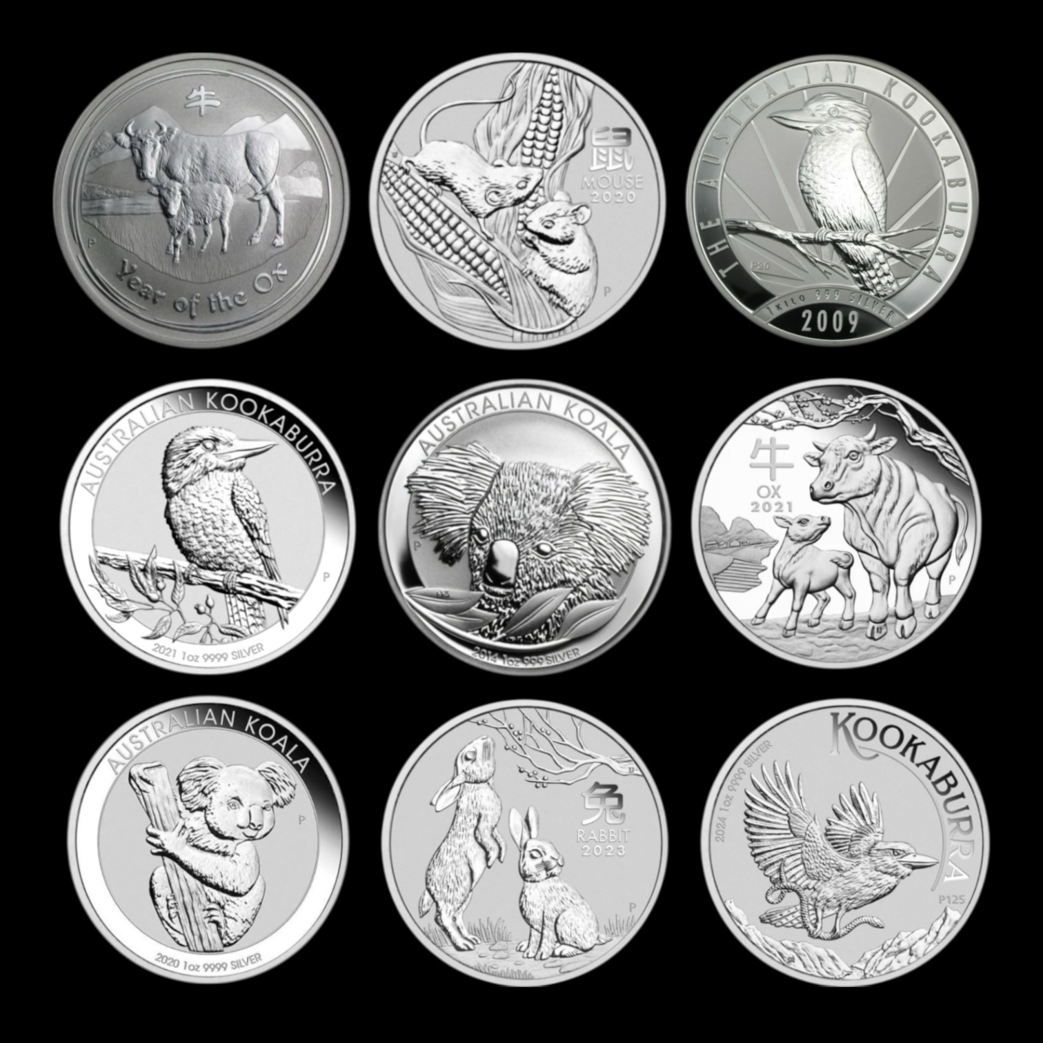 Onza Premium – Australia – 1 Onza Kookaburra, Koala, Lunar ,Panda – Plata Pura .999