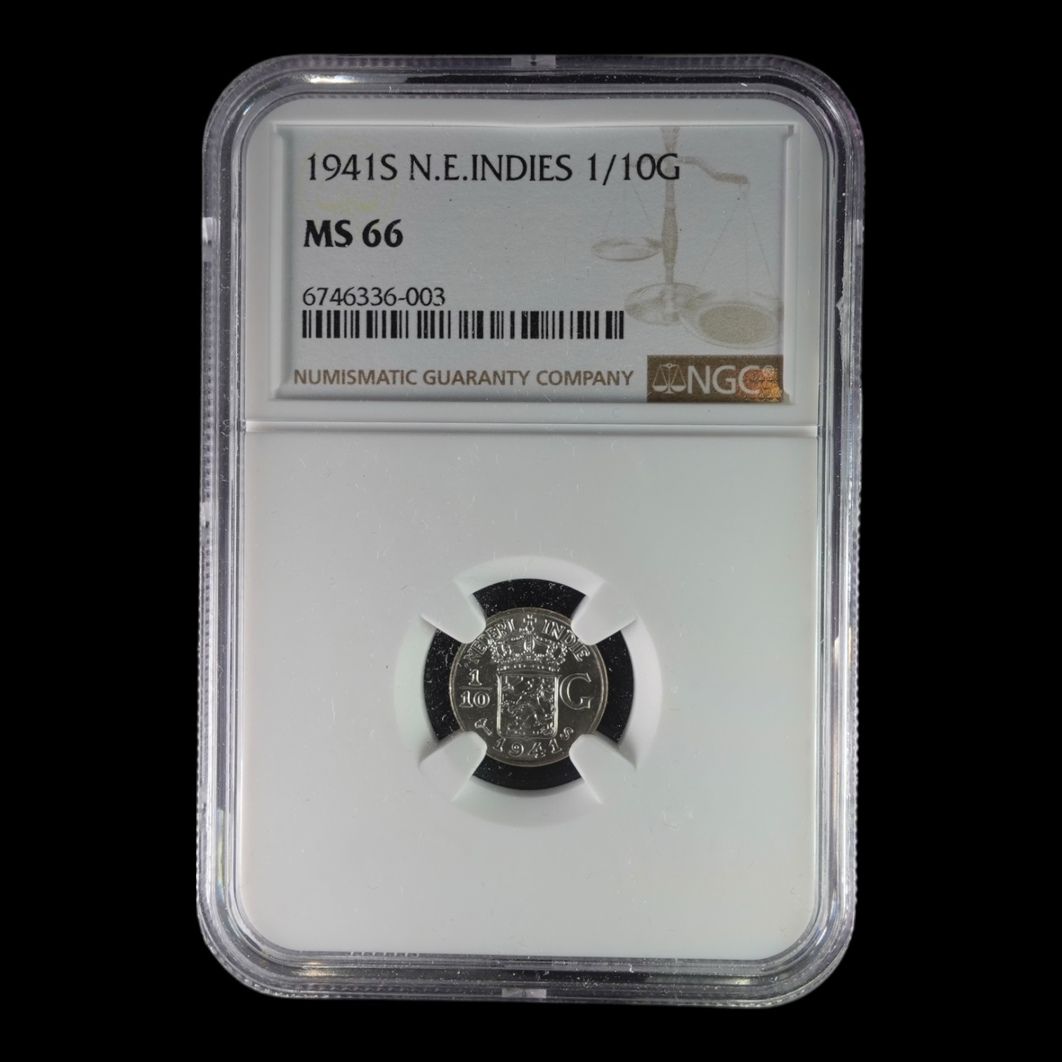 Paises Bajos – 1/10 Gulden East India Company Plata .720 – NGC MS66