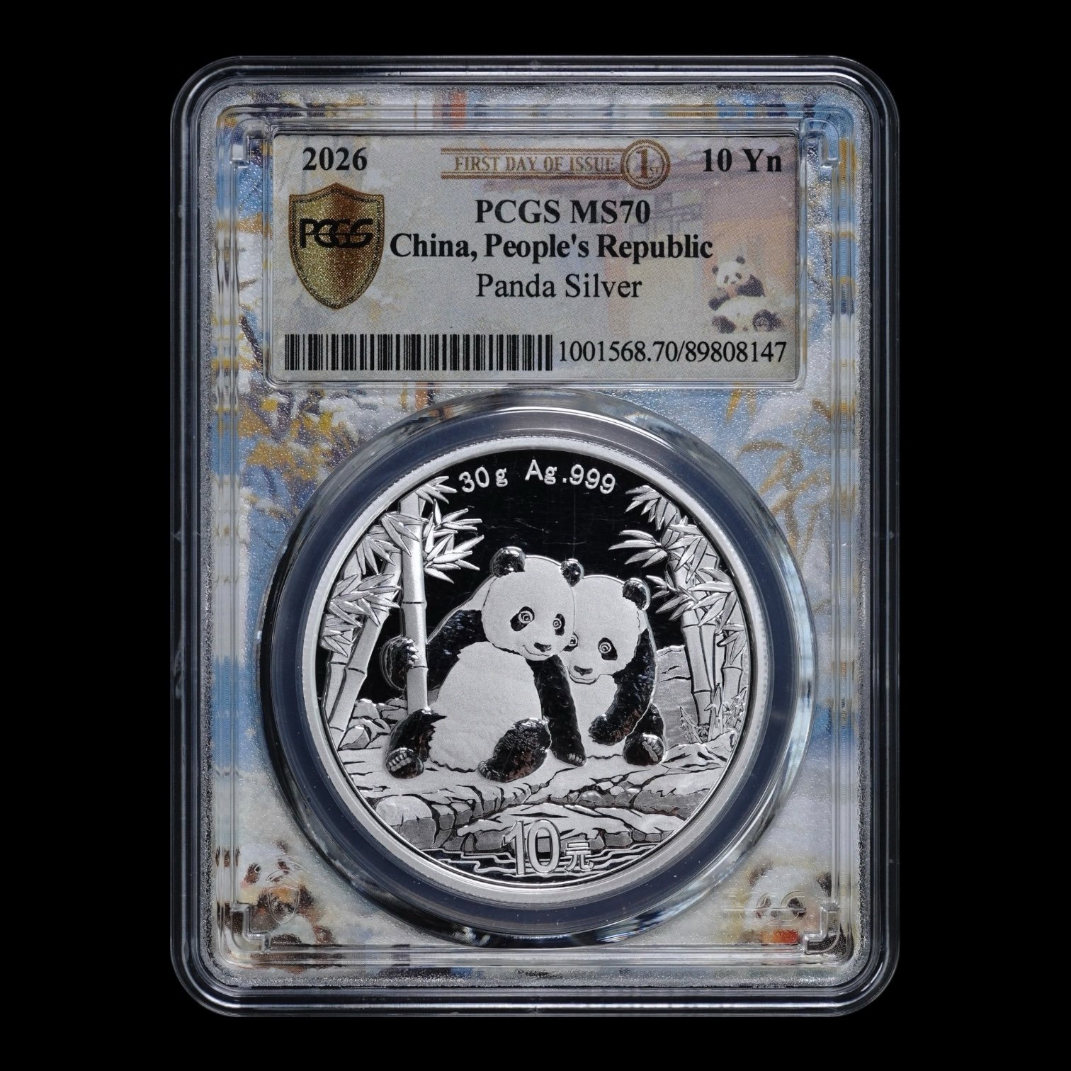 Panda 2026 – Moneda 10 Yuan China – 30 g Plata .999 PCGS MS70