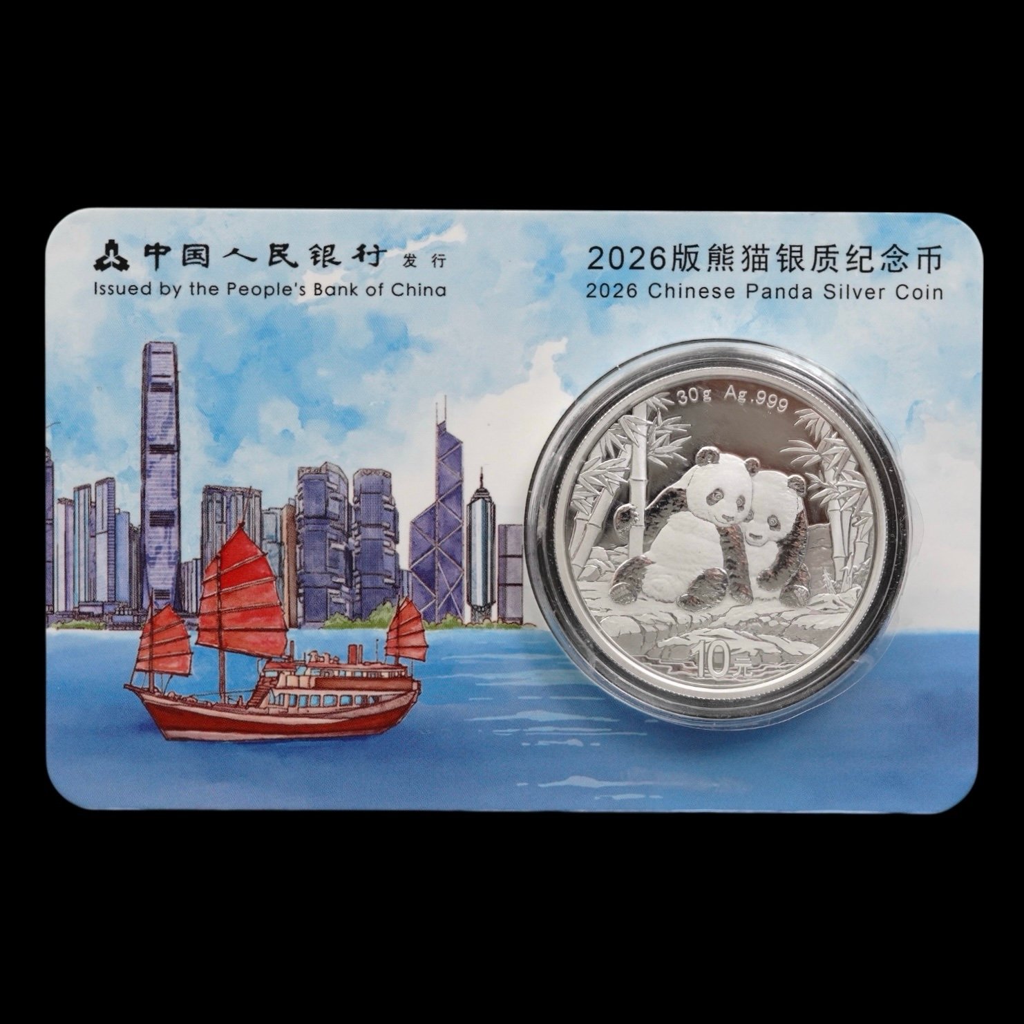 Panda 2026 – Moneda 10 Yuan China – 30 g Plata .999 ( Hong Kong Coin Card Limitado 3000 Ud.)