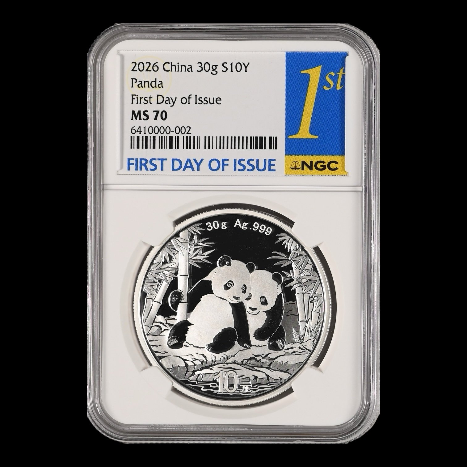 Panda 2026 – Moneda 10 Yuan China – 30 g Plata .999 NGC MS70 ( First day of Issue)