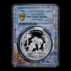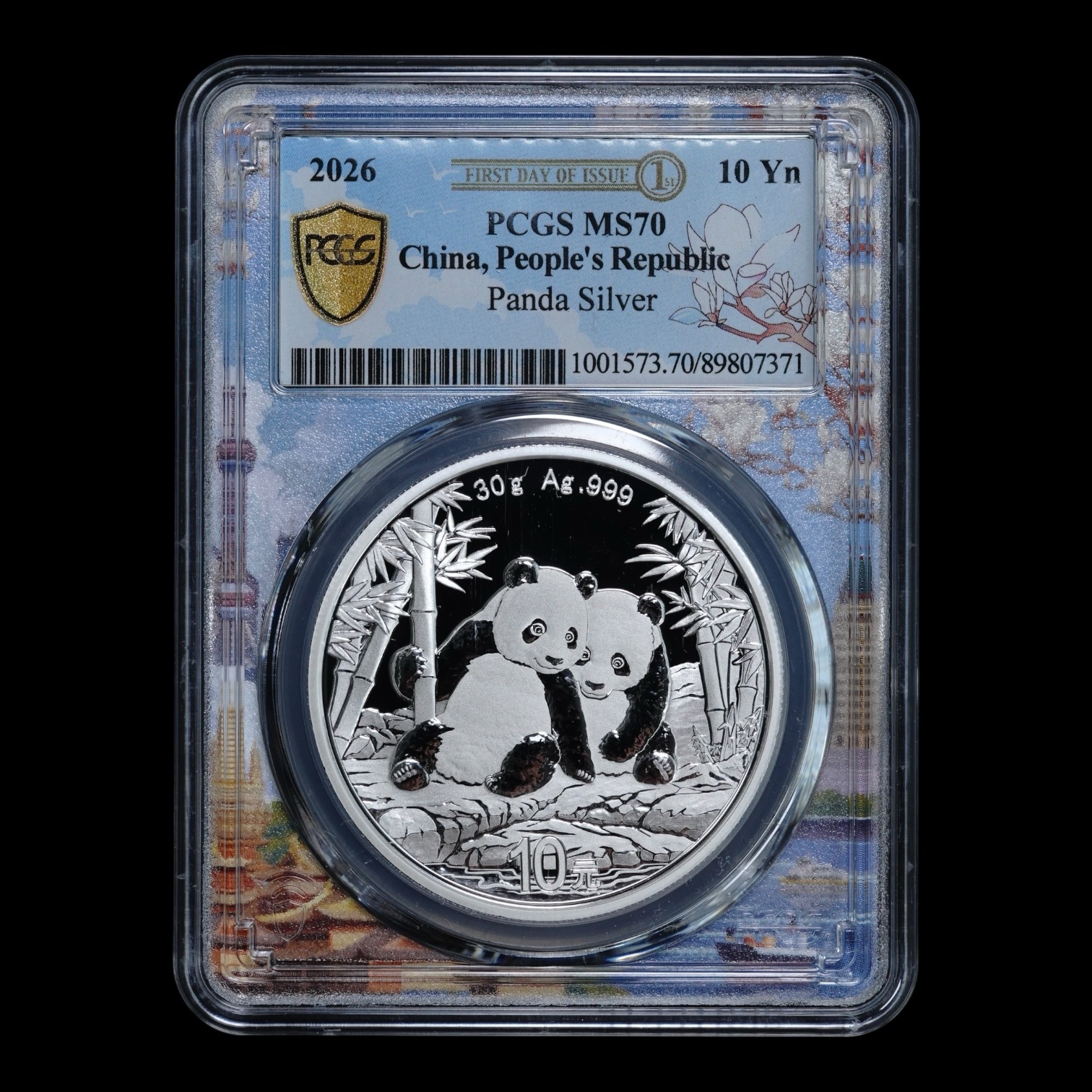 Panda 2026 – Moneda 10 Yuan China – 30 g Plata .999 PCGS MS70 (Shanghai)