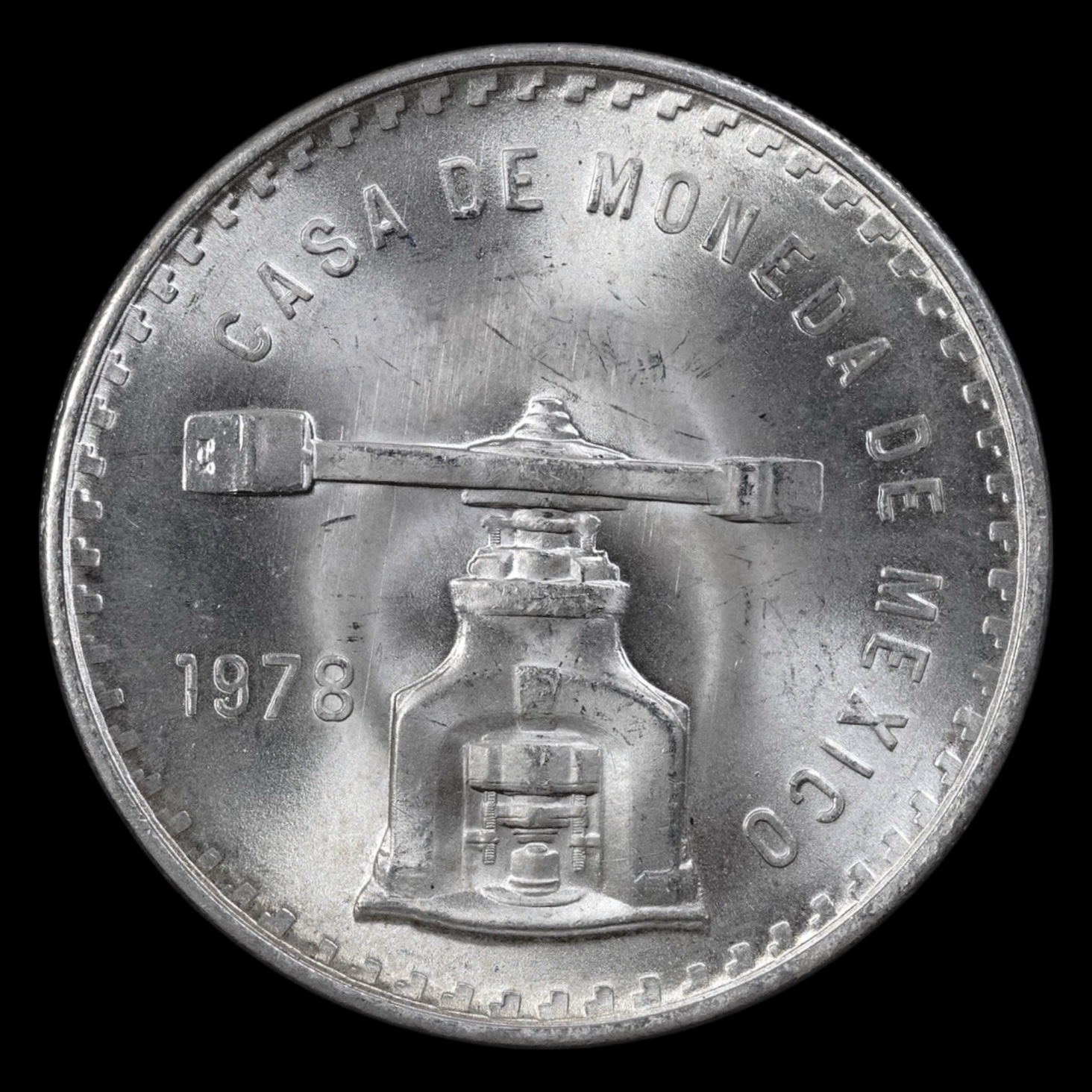 !RARA! 1 Onza de Plata “Balanza y Prensa”- Mexico 1978 ( Brillo Original)